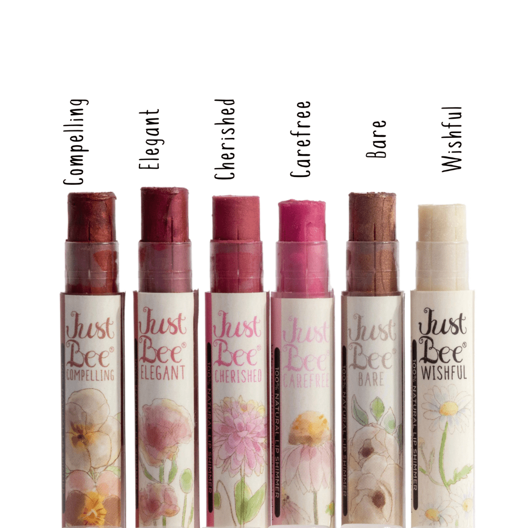 Introducing our 100% natural beeswax lip shimmer in 6 beautiful colors: elegant, cherished, compelling, wishful, carefree, and bare. Kiss dry lips goodbye and add a touch of shimmer and moisture with our Lip Shimmer Stick.