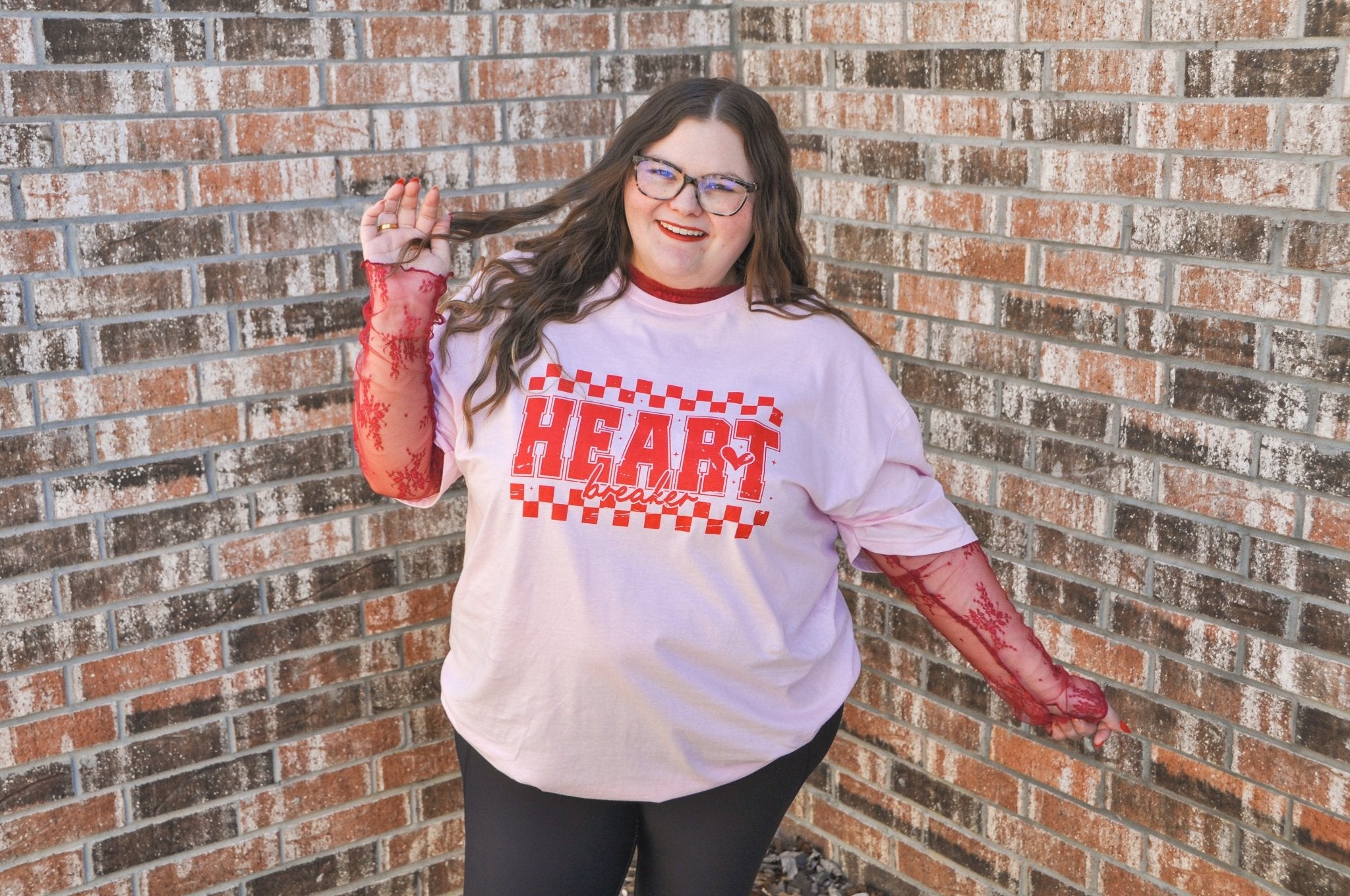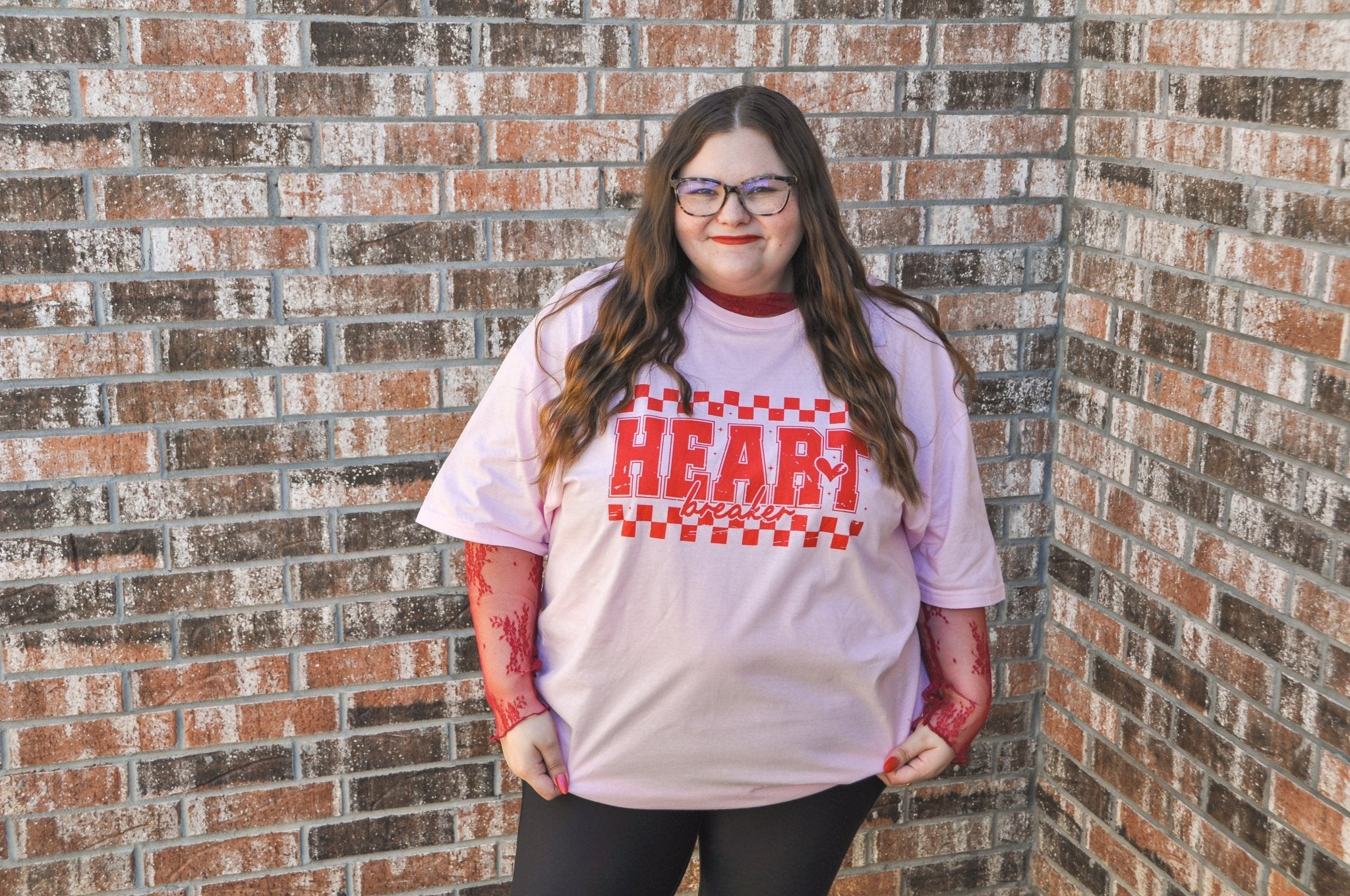 Turn heads in this flirty light pink tee that's equal parts charm and confidence. The "Heart Breaker" design delivers a cheeky vibe perfect for anyone who knows how to make an entrance. Soft, comfortable, and unapologetically fun!