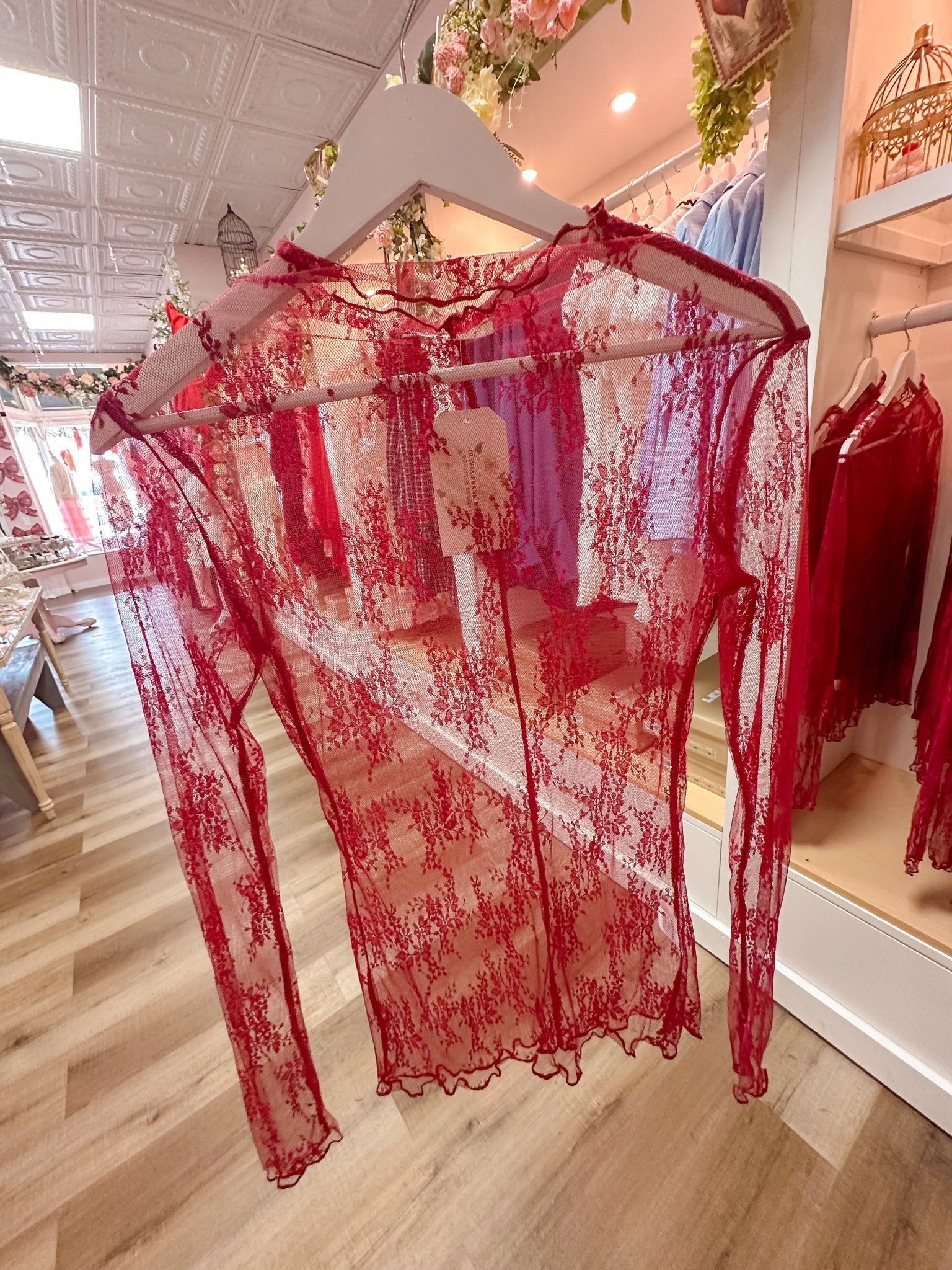 Flirty and fabulous, the Mila Mesh Top brings an instant edge to your wardrobe. Crafted from delicate mesh lace, this versatile piece layers beautifully over basics or stands alone for a bold statement. Choose between black or burgundy to match your mood. Perfect for nights out, date nights, or whenever you want to feel effortlessly chic and a little bit daring.
