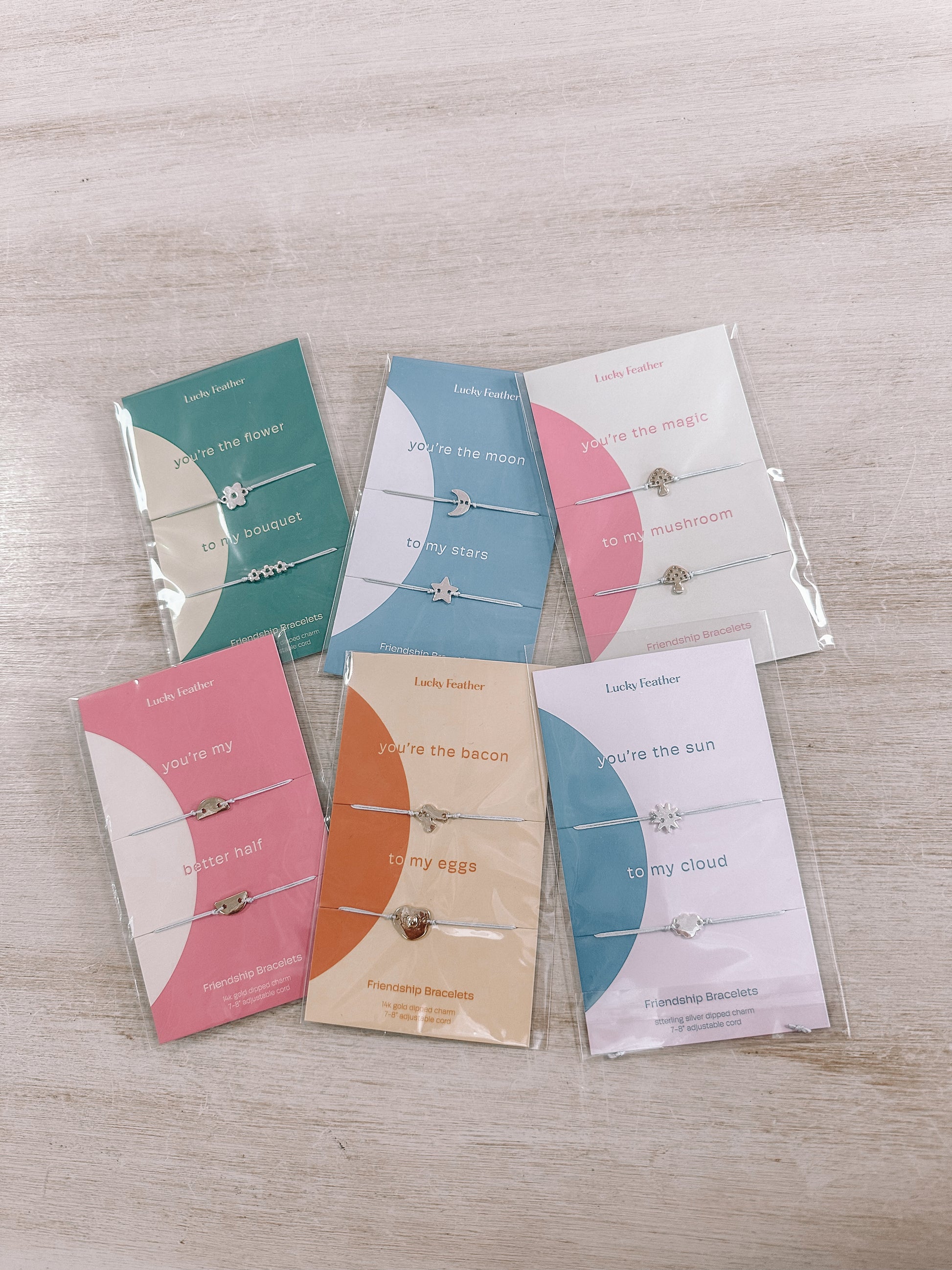These friendship bracelets are more than just a stylish accessory. Featuring a 14k gold dipped charm and an adjustable cord. Perfect for expressing love and appreciation, these bracelets make for meaningful gifts that will strengthen any friendship.