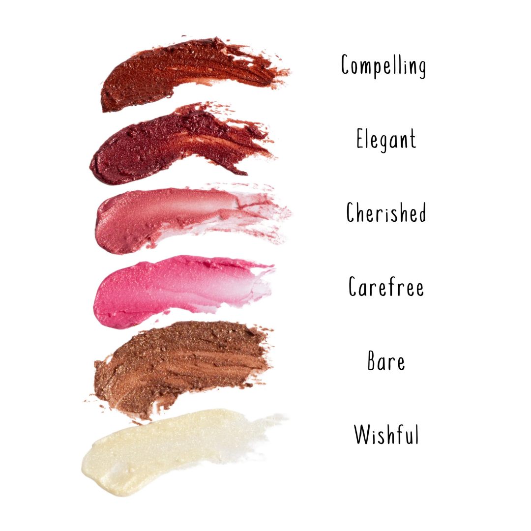 Introducing our 100% natural beeswax lip shimmer in 6 beautiful colors: elegant, cherished, compelling, wishful, carefree, and bare. Kiss dry lips goodbye and add a touch of shimmer and moisture with our Lip Shimmer Stick.