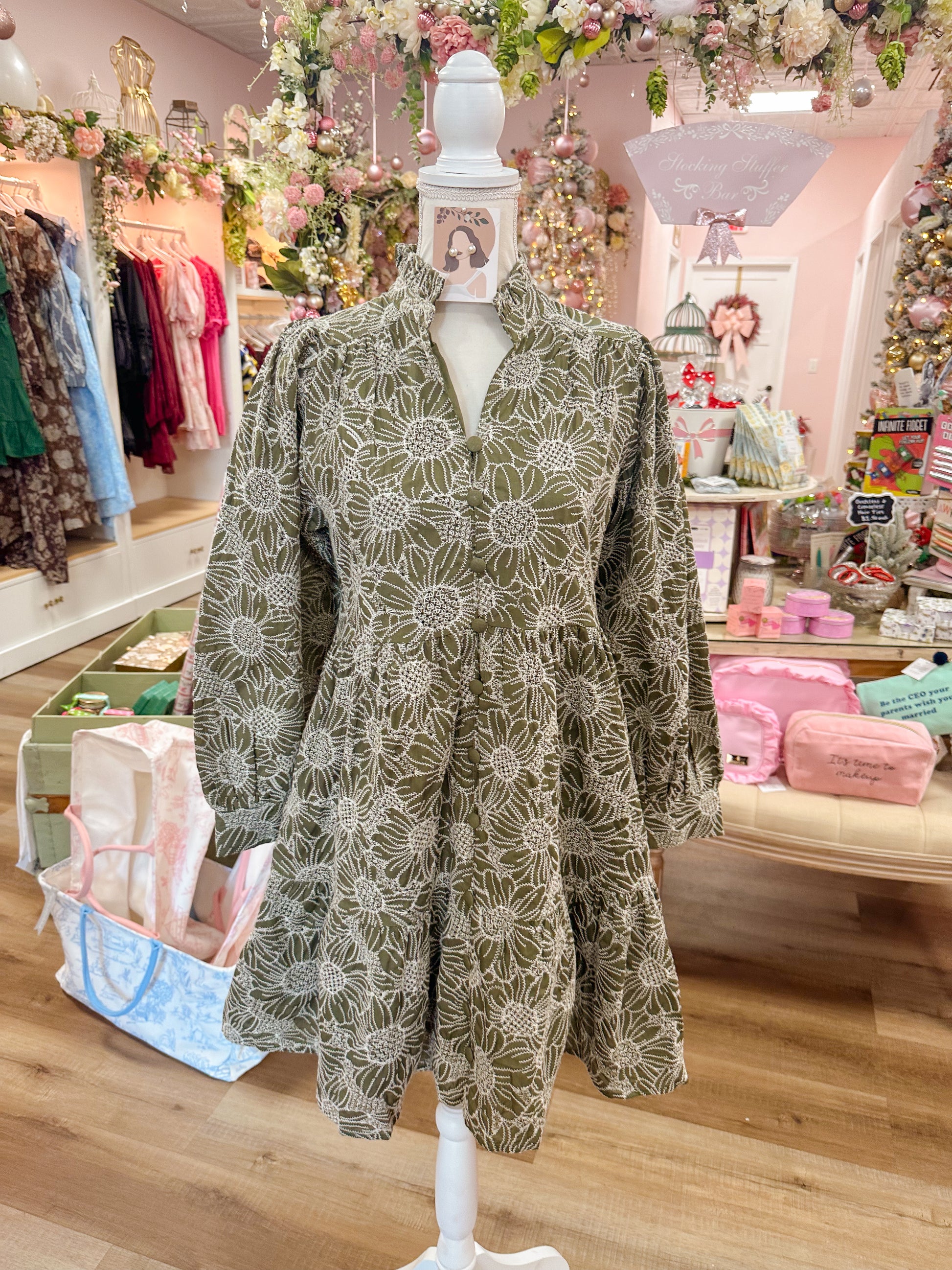 Slip into effortless elegance with this long sleeve olive dress, where earthy sophistication meets charming details. The rich olive hue provides a versatile canvas for the delicate cream embroidery that dances across the fabric, adding a touch of whimsy and personality to your everyday wardrobe!