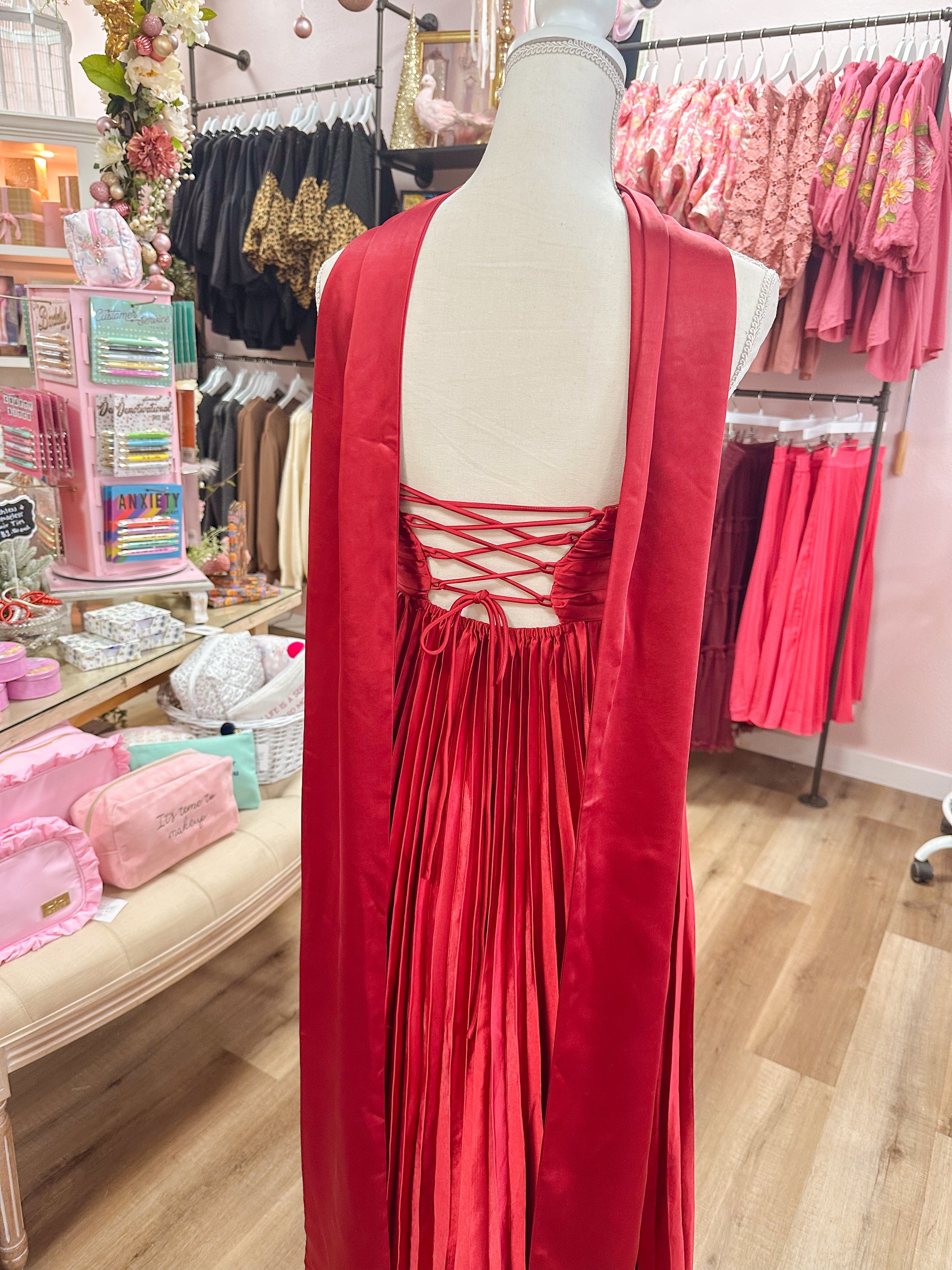 Slip into effortless elegance with our Satin Berry Dress, a showstopper that combines luxe satin fabric with dramatic pleating for a silhouette that moves beautifully. The rich red hue radiates confidence, while the maxi length keeps things sophisticated and timeless.